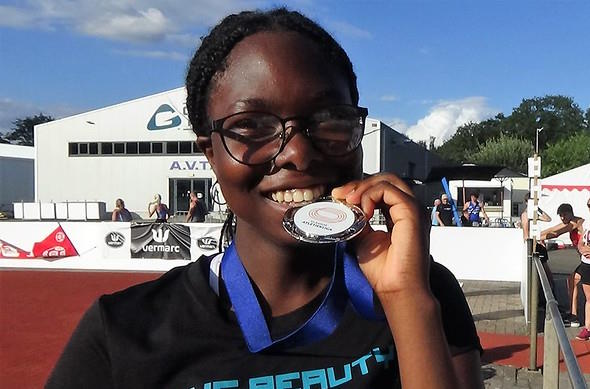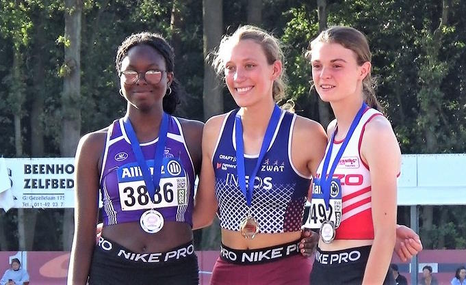 Osa Okaka en haar trainer Frank trokken op 15 augustus naar het KVV in Heusden. De noeste arbeid van trainer en atleet, met soms weken van 5 trainingen, ook in het weekend hebben zeker resultaaat opgeleverd. Via soms ook specifieke/degelijke en verantwoorde horden-/spurt-, alsook krachtrainingen, buiten het springen, werd Osa klaargestoomd om de magische grens van 11m op de hinkstapsprong te overschrijden. Met haar eerste sprong van 10m86, verbeterde ze al haar PR/CR van op het PK. Vervolgens ging ze telkens verder, om bij haar vierde poging, eindelijk over de 11m te springen; 11m06. Daarmee eindigde ze op de tweede plaats van dit kampioenschap. Met het bewijs, dat degelijke, voldoende/regelmatige en gedisciplineerde trainingen – wat onderdelen ervan (springen, horden/spurt) betreft – wel degelijk zijn vruchten afwerpt. Dikke proficiat Osa. en haar trainer Frank! Meer foto’s en video’s op vind je deze link op Flickr.