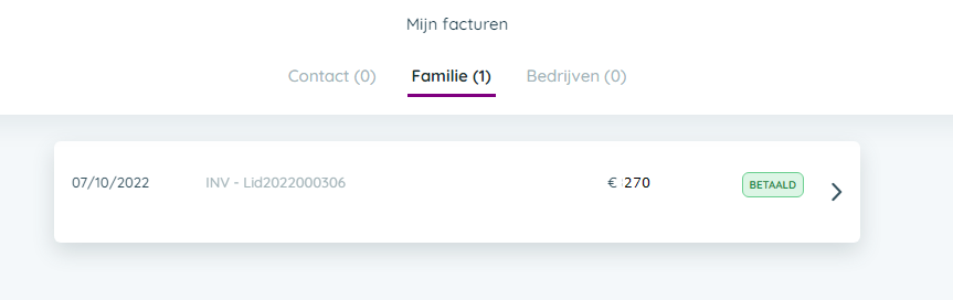 Betalingen worden gefactureerd en de factuur verschijnt in de rubriek ‘Facturen’. Een factuur heeft volgende statussen: